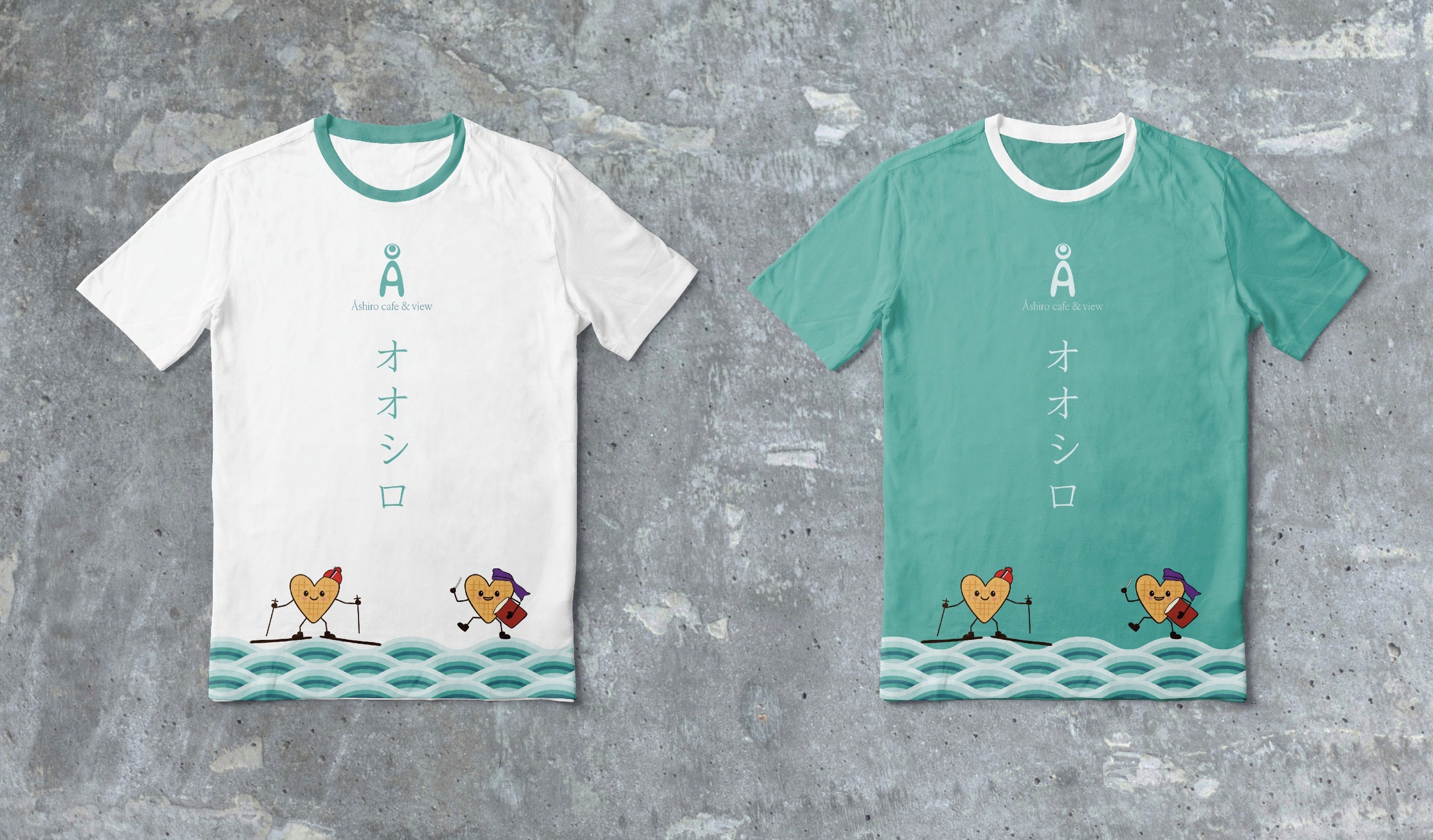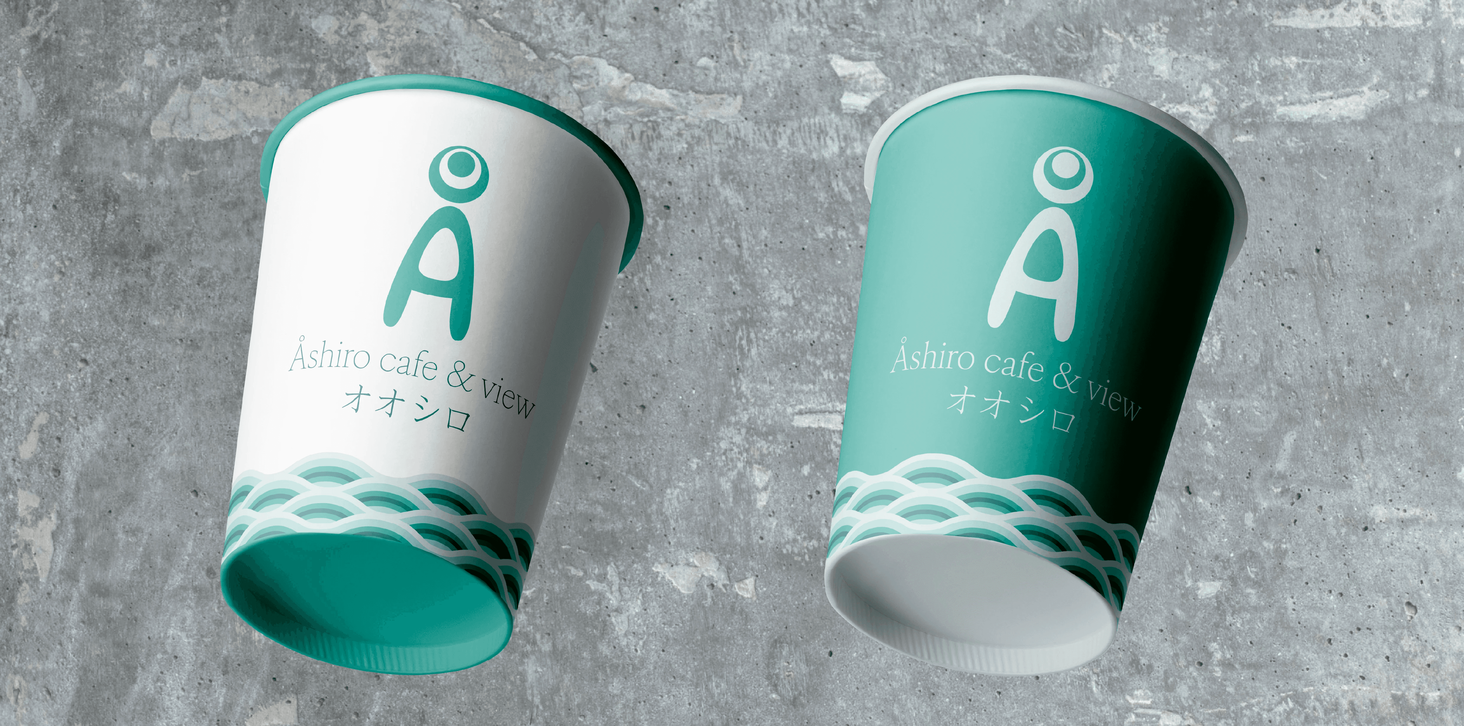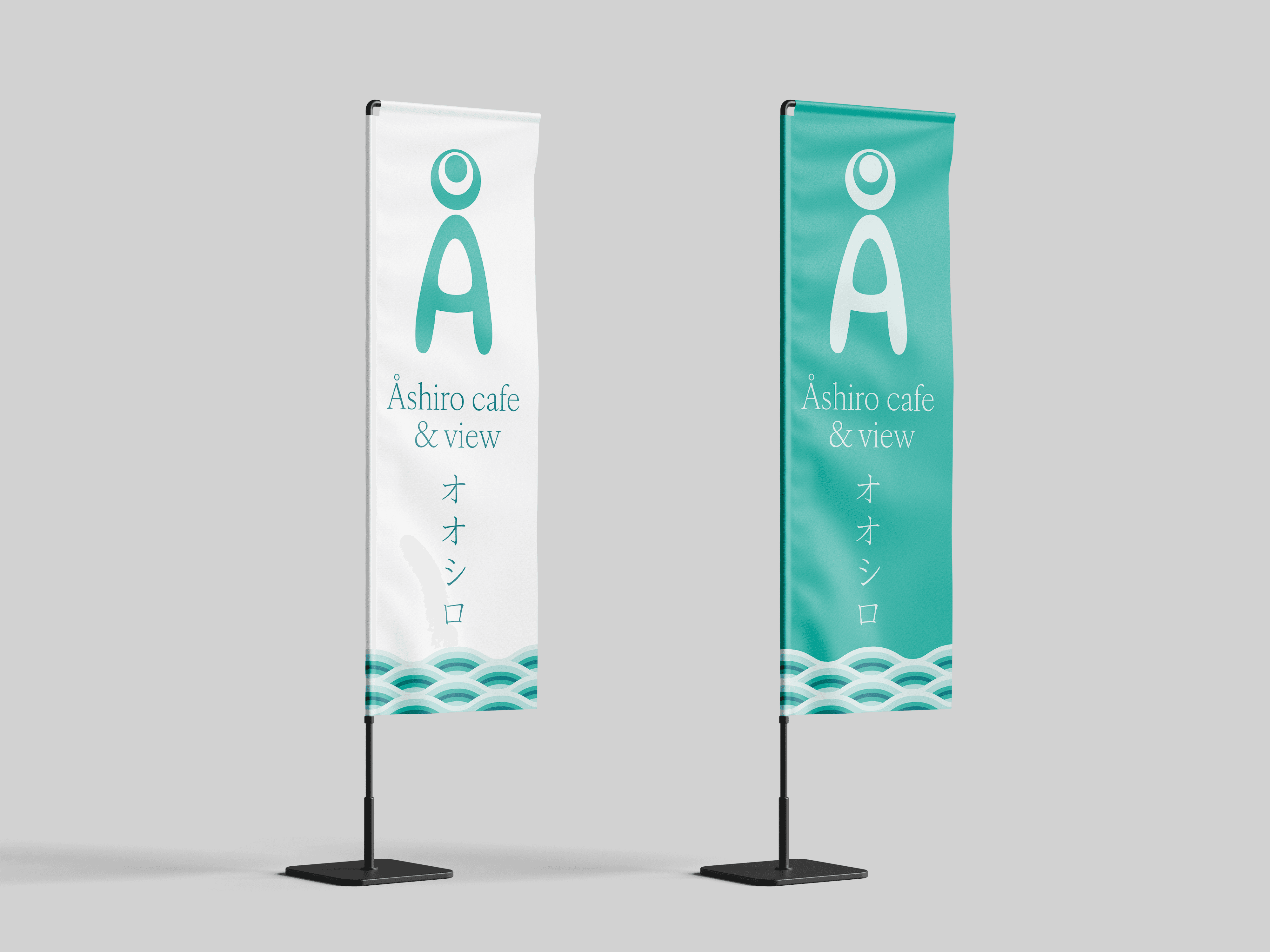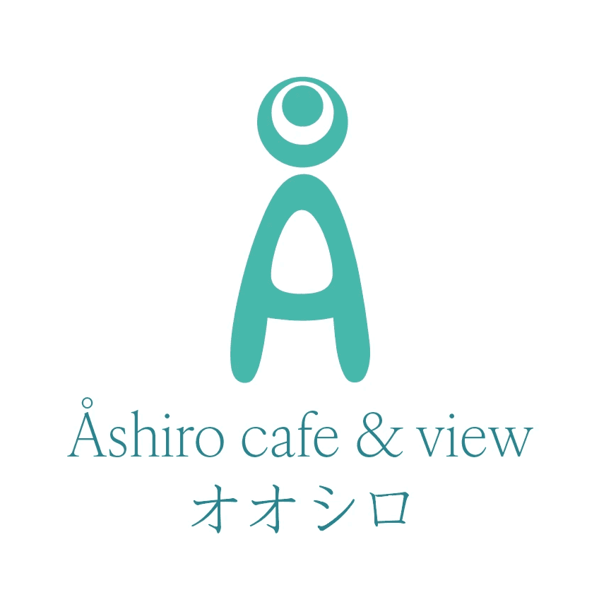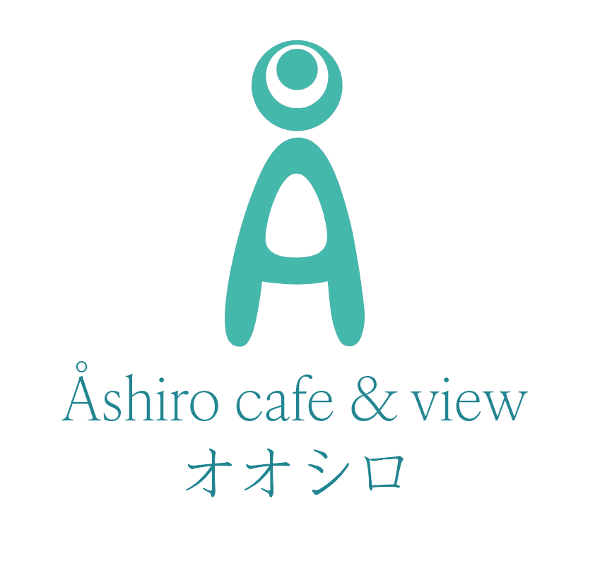 The name of the cafe, “Åshiro café & view” is written with an elegant serif that creates a nice contrast to the soft logo shape. Below the text “Åshiro café & view” is the name “Åshiro” written in the Japanese script, katakana, to make it more accessible to Japanese guests.