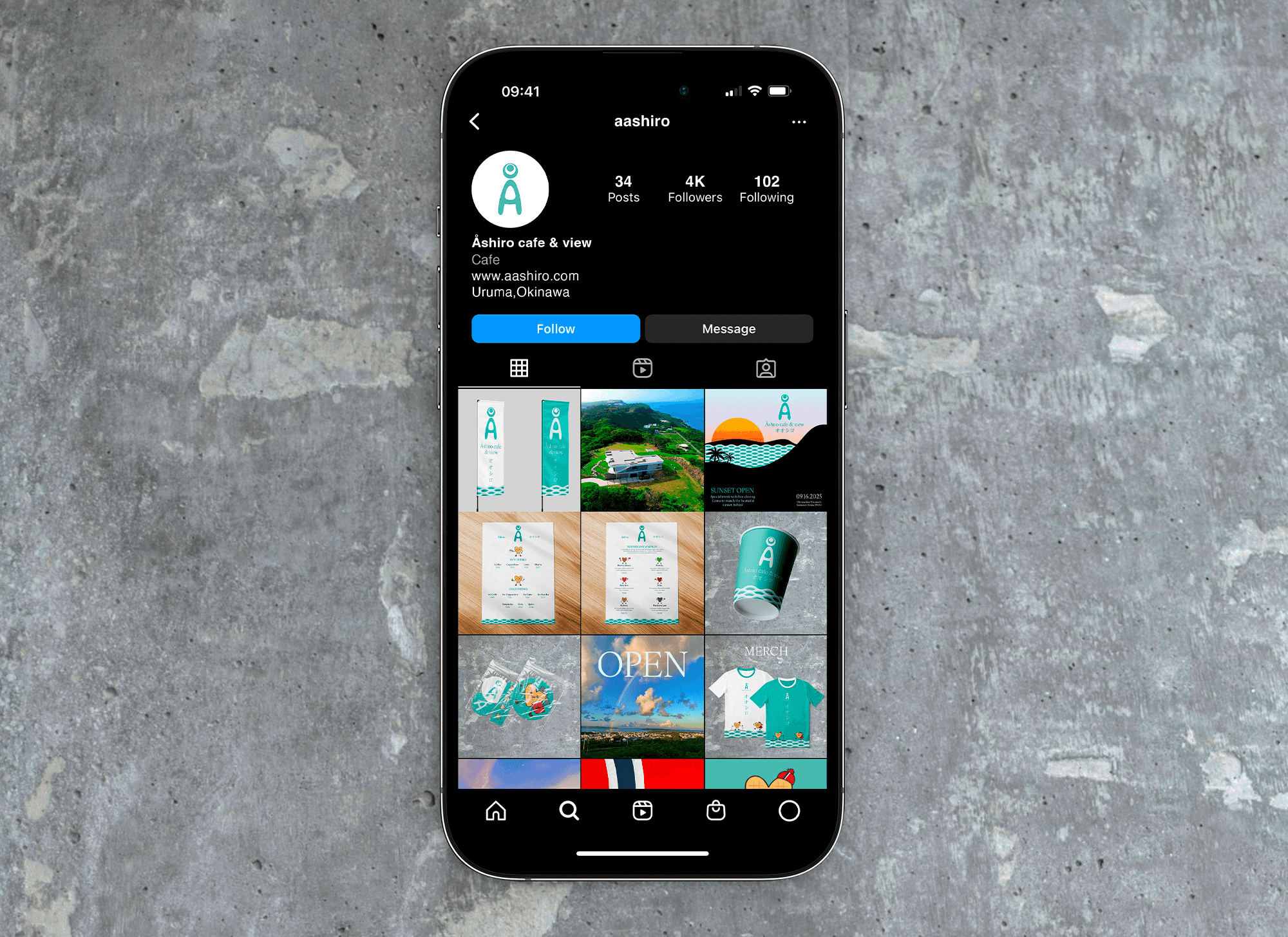 Åshiro's color palette is inspired by the ocean and surrounding nature in both Okinawa and Norway. The palette has a natural and balanced expression that symbolizes the café's view and calm atmosphere.