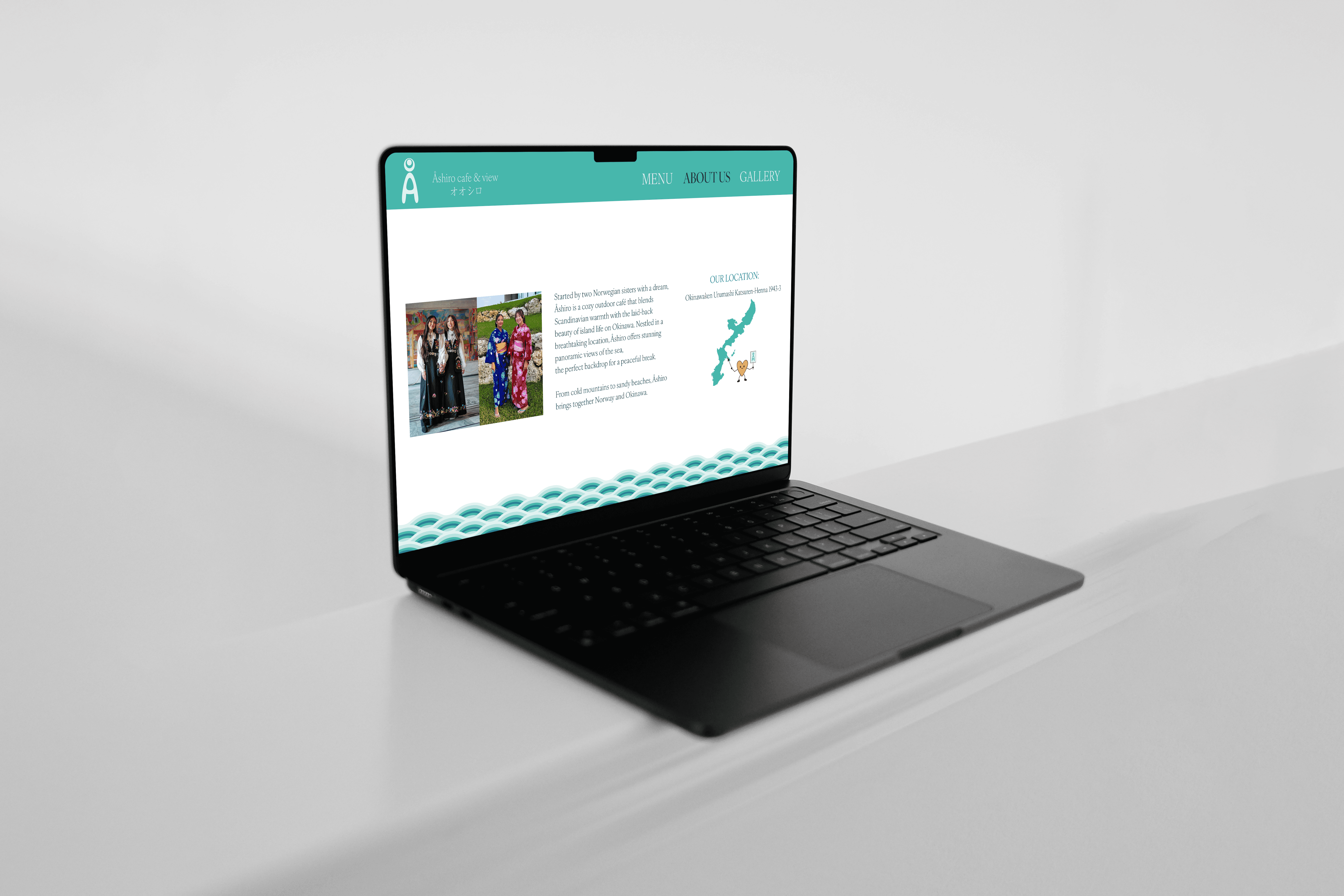 fantastic panoramic view of the sea and island of Okinawa. The visual identity aims to reflect Åshiro’s connection to both Norway and Okinawa, as well as being welcoming and family friendly.